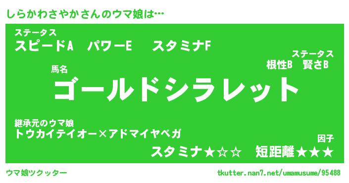 | 伝説のあだ名 | 『封印されしスナイパーしらかわさやか』 |