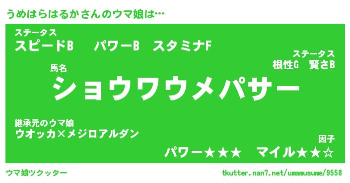 | ヒーロー風カッコイイあだ名 | 『スーパーウメハラハルカ』 |