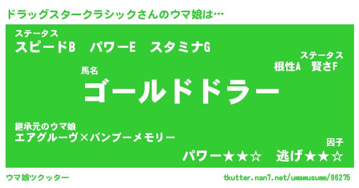 | 肩書あだ名 | 『ドラッグスタークラシック御曹司』 |