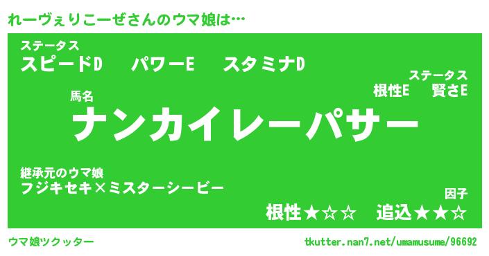 | ファンタジー風あだ名 | 『レーフェル』『ファントムレース』 |