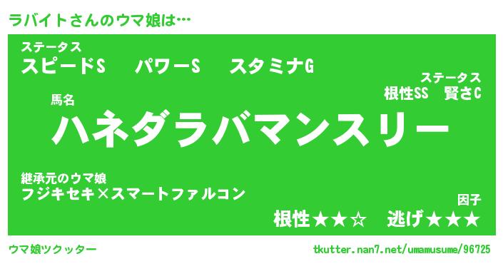 | 自動車の名前っぽいあだ名 | 『ラバティマ』『ラスラー』『ランR』 |