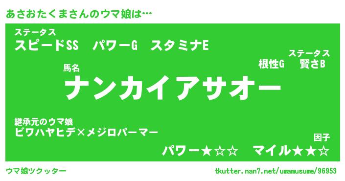 | 伝説のあだ名 | 『不死鳥のスナイパーあさおたくま』 |