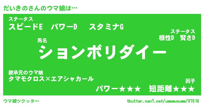 | 肩書あだ名 | 『だいきの御曹司』『だいきの国家主席』 |