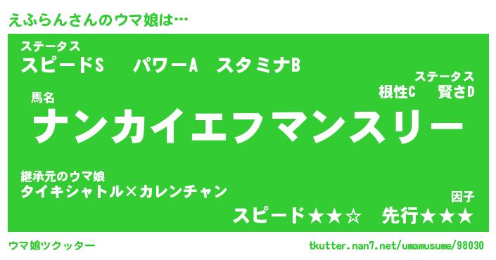 | 欧米人風あだ名 | 『マイケルえふらん』『ウサインえふらん』 |