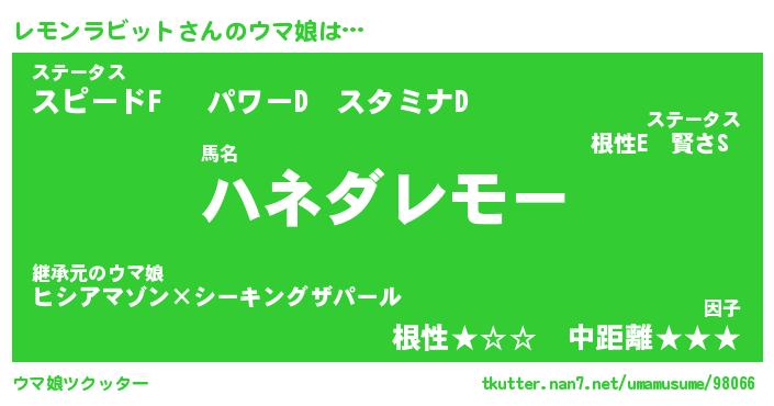 | 伝説のあだ名 | 『封印されし竜騎士レモンラビット』 |