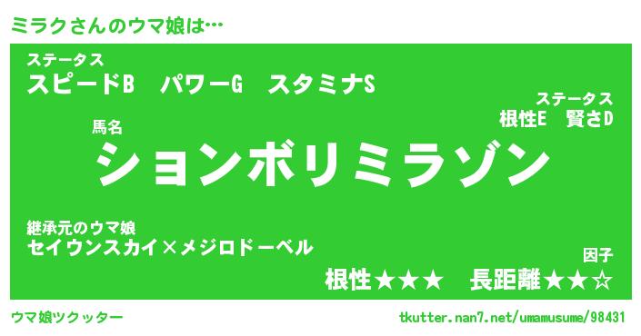 | 意味不明あだ名 | 『ペロリンミラク』『ミラクフォーエバー』 |