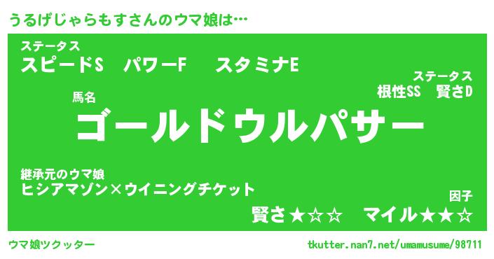 | ヒーロー風カッコイイあだ名 | 『スーパーウルゲジャラモス』 |
