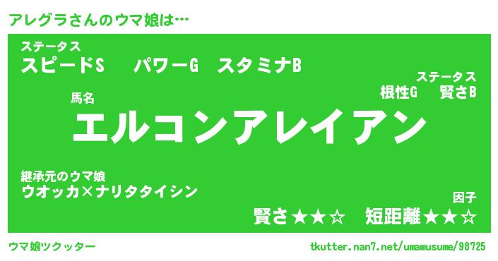 | ヒーロー風カッコイイあだ名 | 『スーパーアレグラ』『天弓騎士アレ』 |