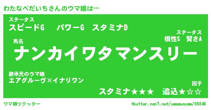 | ポケモン風あだ名 | 『ワタチュウ』『ワタナダネ』 |