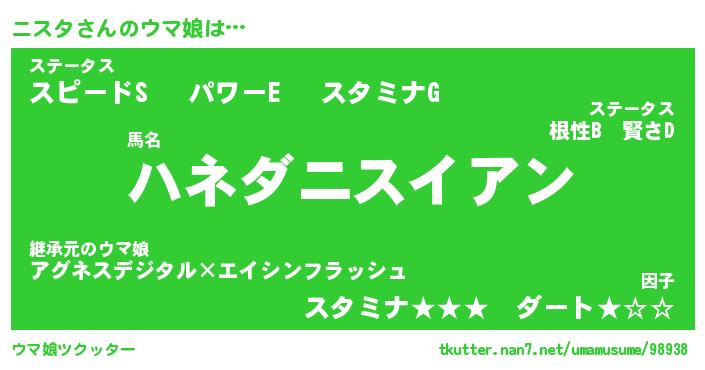 | ヒーロー風カッコイイあだ名 | 『スーパーニスタ』『ウルトラニスタマン』 |