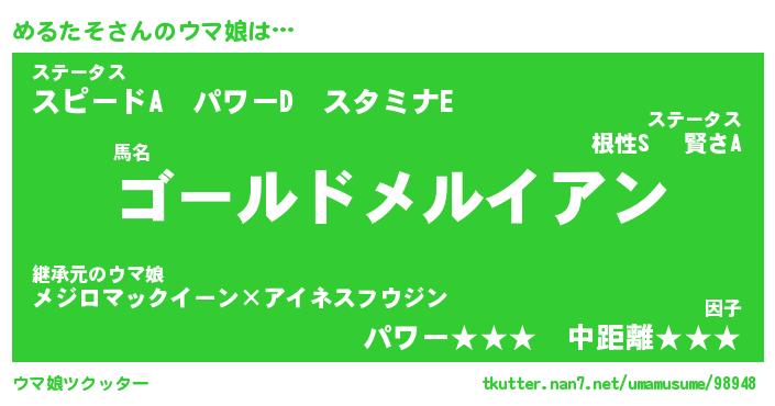 | ファンタジー風あだ名 | 『メルフェル』『エターナルメルタソー』 |