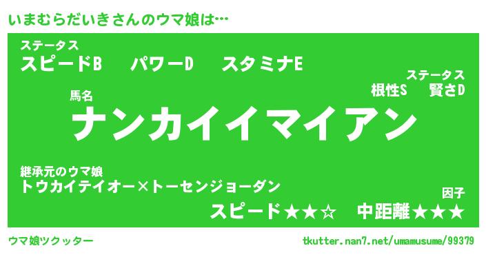 | ポケモン風あだ名 | 『イマチュウ』『イマムダネ』 |