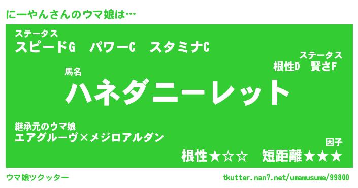 | 意味不明あだ名 | 『ペロリンにーやん』『永久保存にーやん』 |