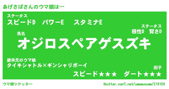 | ファンタジー風あだ名 | 『アゲフェル』『エターナルアゲサバー』 |