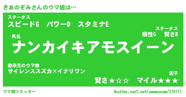 | 料理風あだ名 | 『節約★きあのぞみと油揚げの玉子丼』 |