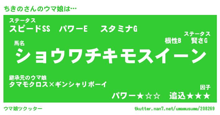 | ヘコむあだ名 | 『ちきふぇ~』『豆乳』『ちきぷりん』 |