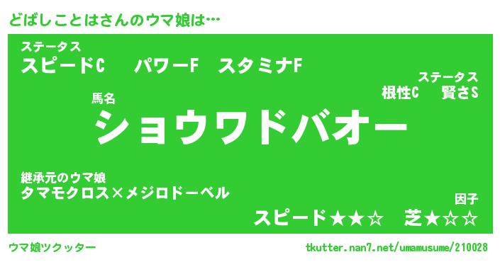 | 2回繰り返すあだ名 | 『どばどば』『どどばば』『うろうろ』 |