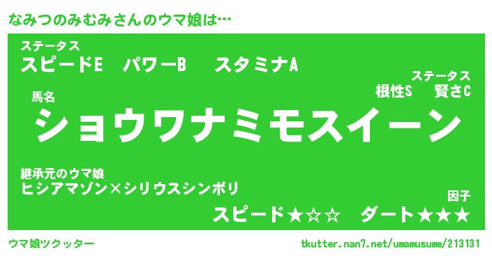 | 欧米人風あだ名 | 『マイケルなみつのみむみ』 |