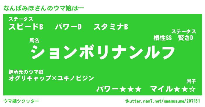 ポケモン風あだ名 | 『ナンチュウ』『ナンバダネ』 |