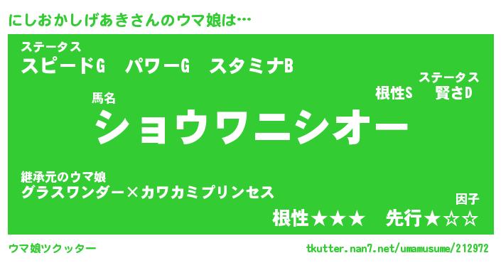 | 料理風あだ名 | 『ほっこり♪にしおかしげあきの味噌そぼろ煮』 |