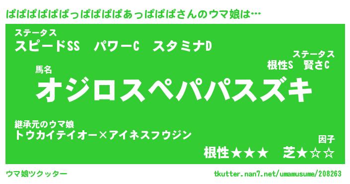 | 胡散臭い通販商品みたいなあだ名 | 『必ず成功する霊験あらたかなお札…その名も「ぱぱぱぱぱぱっぱぱぱぱあっぱぱぱ」』 |
