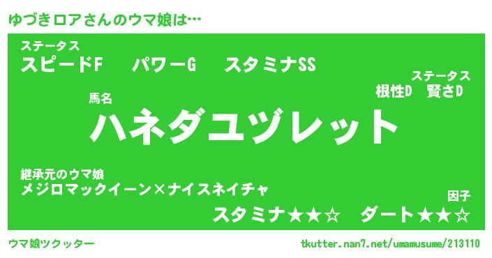 | 自動車の名前っぽいあだ名 | 『ユヅティマ』『ユスラー』『ユント』 |