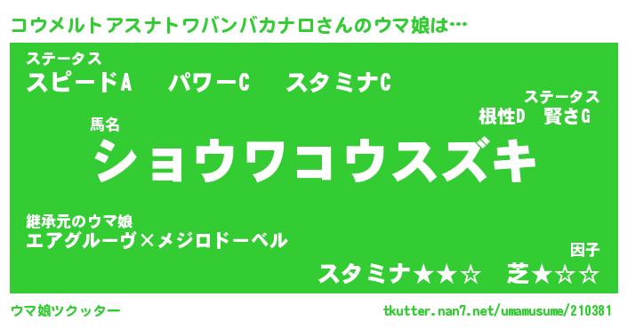 | 胡散臭い通販商品みたいなあだ名 | 『必ず成功する霊験あらたかなお札…その名も「コウメルトアスナトワバンバカナロ」』 |