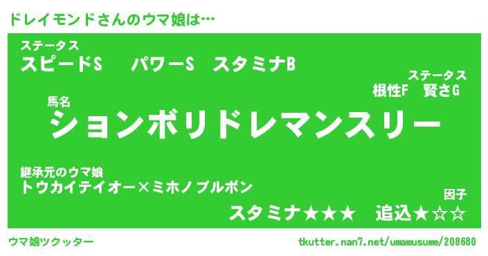 | 料理風あだ名 | 『節約★ドレイモンドと油揚げの玉子丼』 |