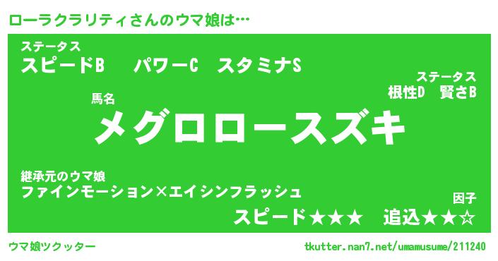 | 料理風あだ名 | 『ほっこり♪ローラクラリティの味噌そぼろ煮』 |