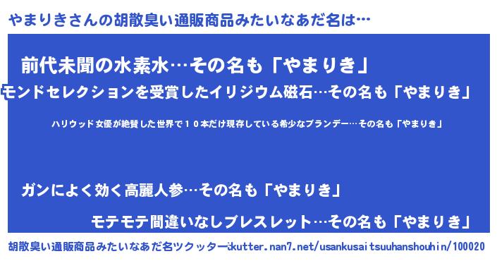 | ヘコむあだ名 | 『やまりき(震え声)』『やまもー』 |