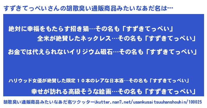 | ポケモン風あだ名 | 『スックウザ』『ゼニスズ』 |
