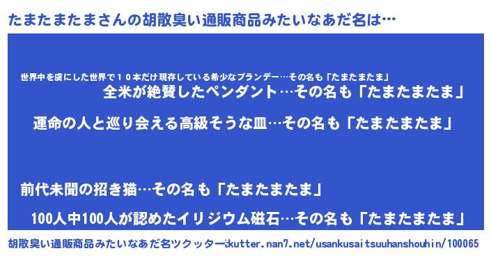 たまたまたまさんの胡散臭い通販商品みたいなあだ名をツクッター!