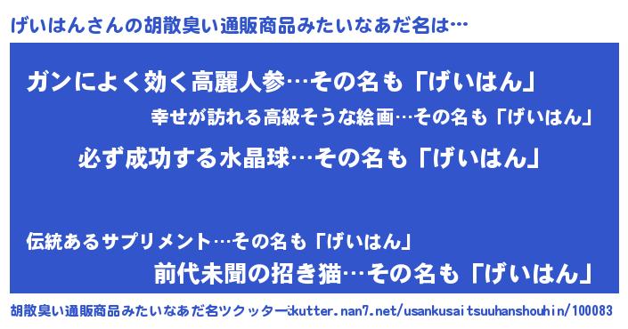 | 意味不明あだ名 | 『ペロリンげいはん』『自称げいはん』 |