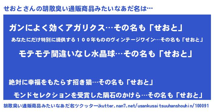 | ヘコむあだ名 | 『せおもー』『せおと(笑)』 |