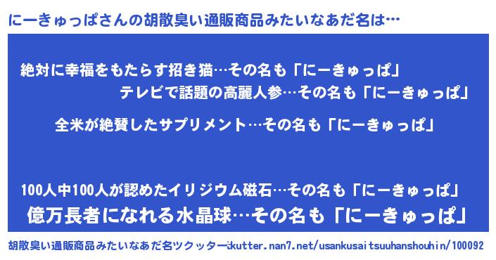 | ヒーロー風カッコイイあだ名 | 『天弓騎士ニー』『ネオニーキュッパ』 |