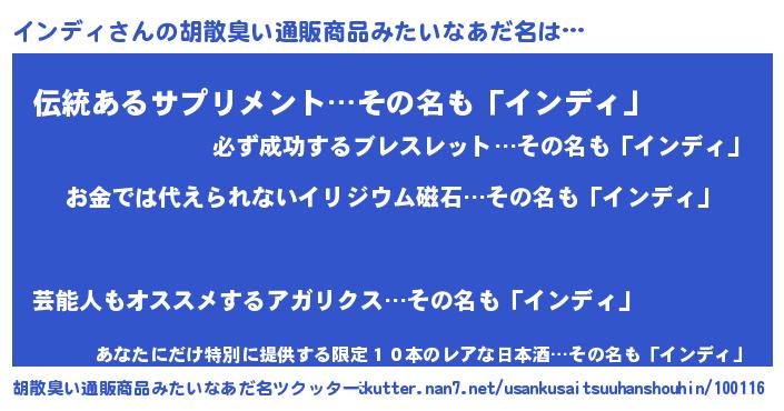 | 女子向けラノベタイトル風あだ名 | 『インディ恋絵巻』『インディ様がみてる』 |