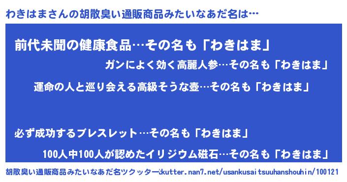 | 意味不明あだ名 | 『わきはまフォーエバー』『自称わきはま』 |