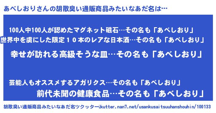 | 肩書あだ名 | 『あべしおりプロデューサー』 |
