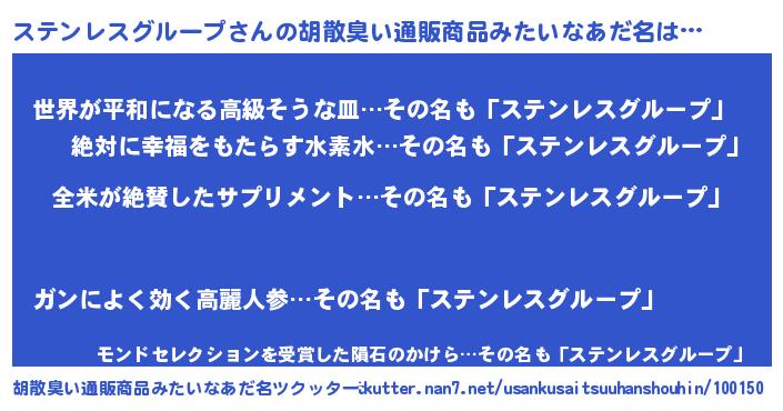 | ことわざ | 仏の顔も三度まで『ステンレスグループの顔も三度まで』 |