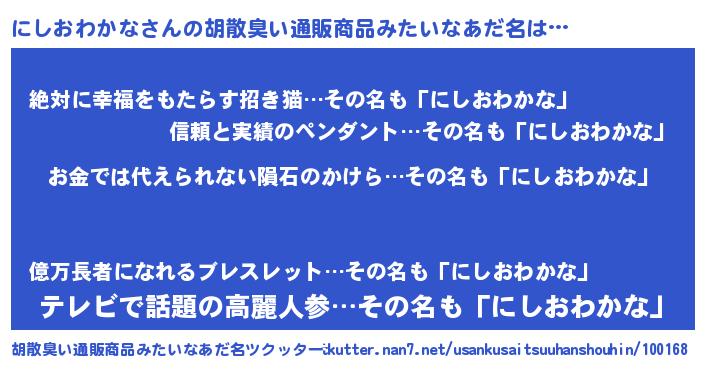 | 女子向けラノベタイトル風あだ名 | 『にしおわかな恋絵巻』 |
