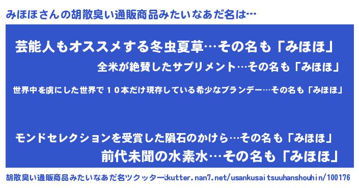 | 意味不明あだ名 | 『住所不定無職みほほ(79歳)』『自称みほほ』 |