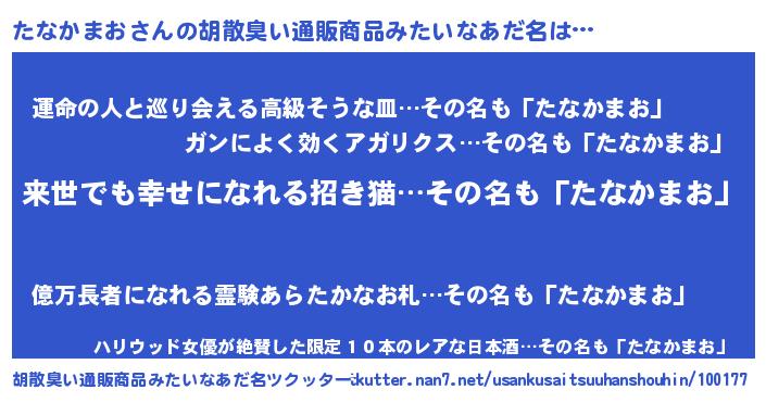 | ヘコむあだ名 | 『たなかまお(笑)』『酢こんぶ』 |