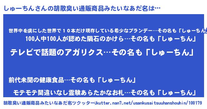 | 恥ずかしいあだ名 | 『シューチンデラックス』『しゅちん』 |