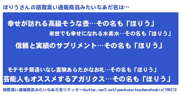 | 意味不明あだ名 | 『とにかく怪しいほりう』『自称ほりう』 |