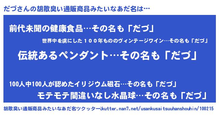 | ヘコむあだ名 | 『だづぷりん』『だづ(笑)』『豆乳』 |