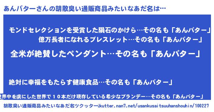 | 意味不明あだ名 | 『とにかく怪しいあんバター』 |