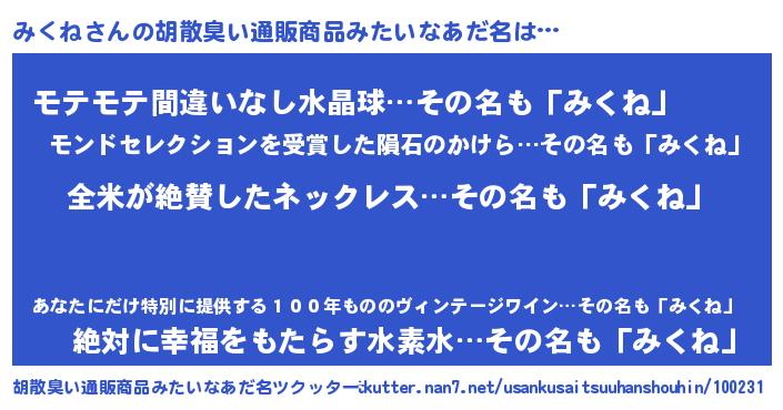 | 意味不明あだ名 | 『とにかく怪しいみくね』 |