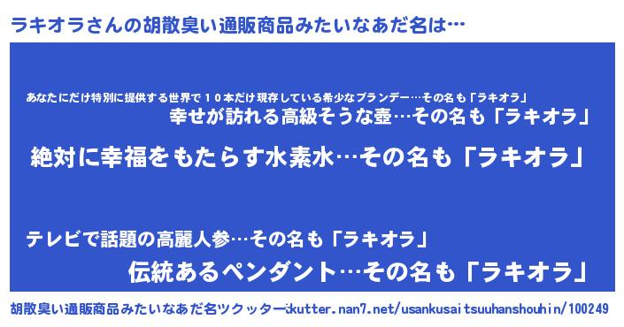 | ヘコむあだ名 | 『ラキオラ(遠い目)』『ラキっちょ』 |
