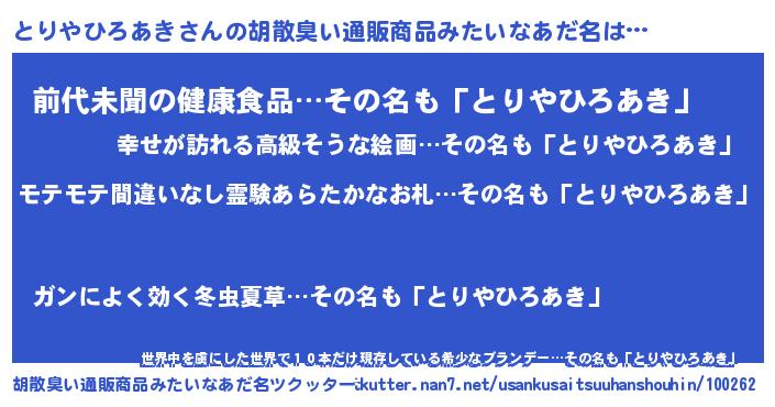 | ヘコむあだ名 | 『とりもー』『とりやひろあき(笑)』 |