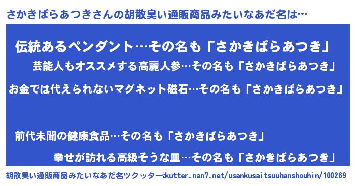 | 男性向けラノベタイトル風あだ名 | 『冴えないさかきばらあつきの育てかた』 |